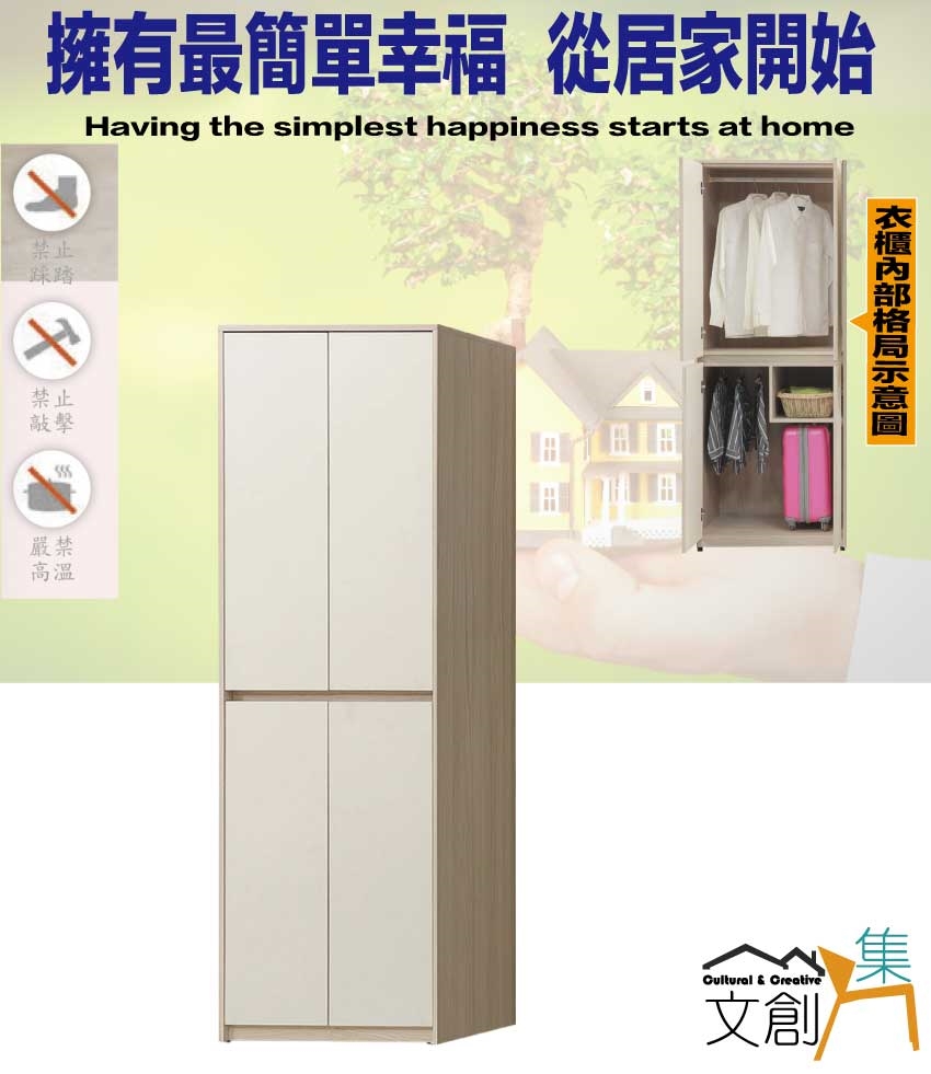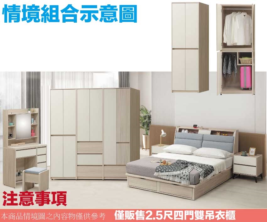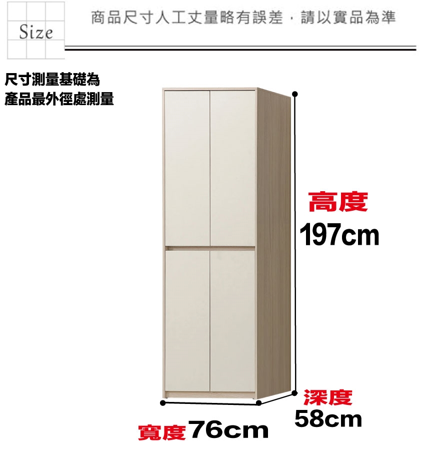 - ◆產品名稱:【綠家居】艾悠2.5尺四門內雙吊衣櫃