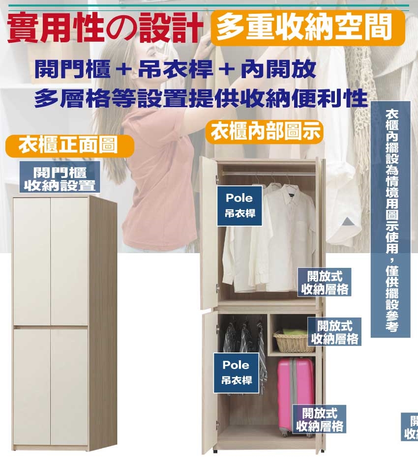 開門櫃+吊衣桿+內開放層格