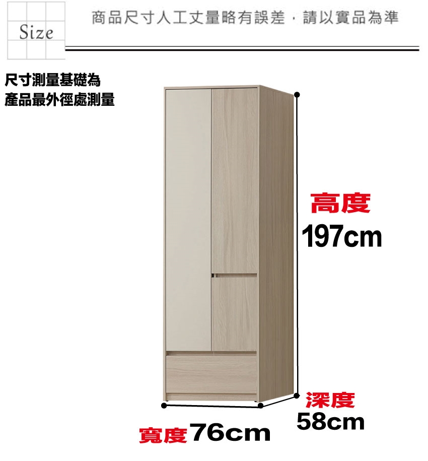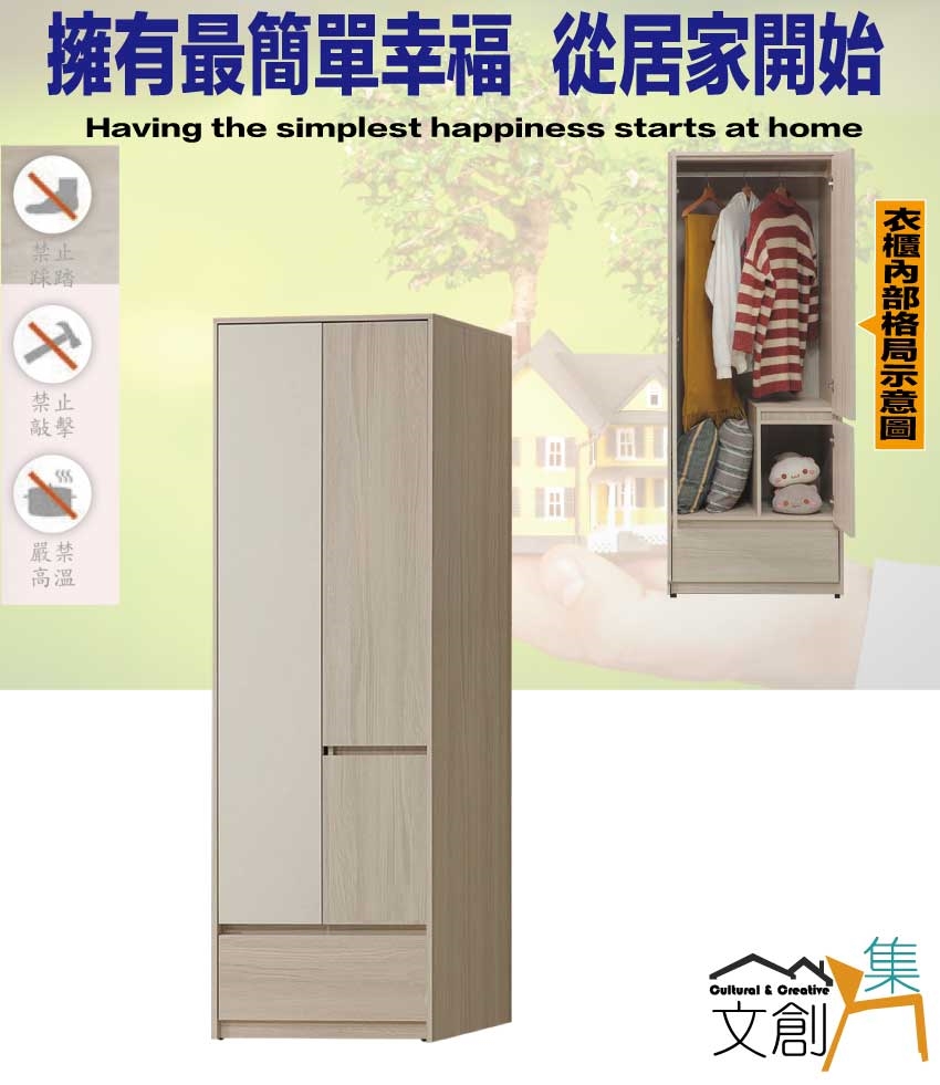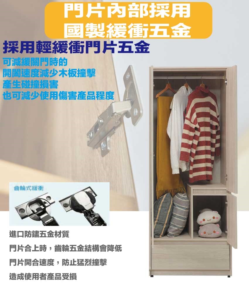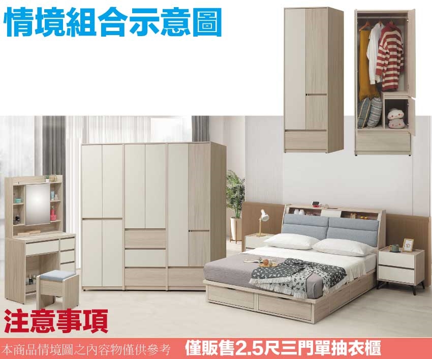 - ◆產品名稱:【綠家居】艾悠2.5尺三門單抽衣櫃