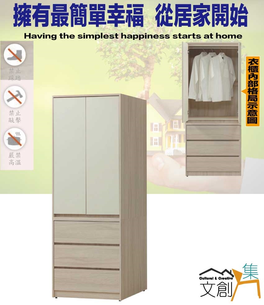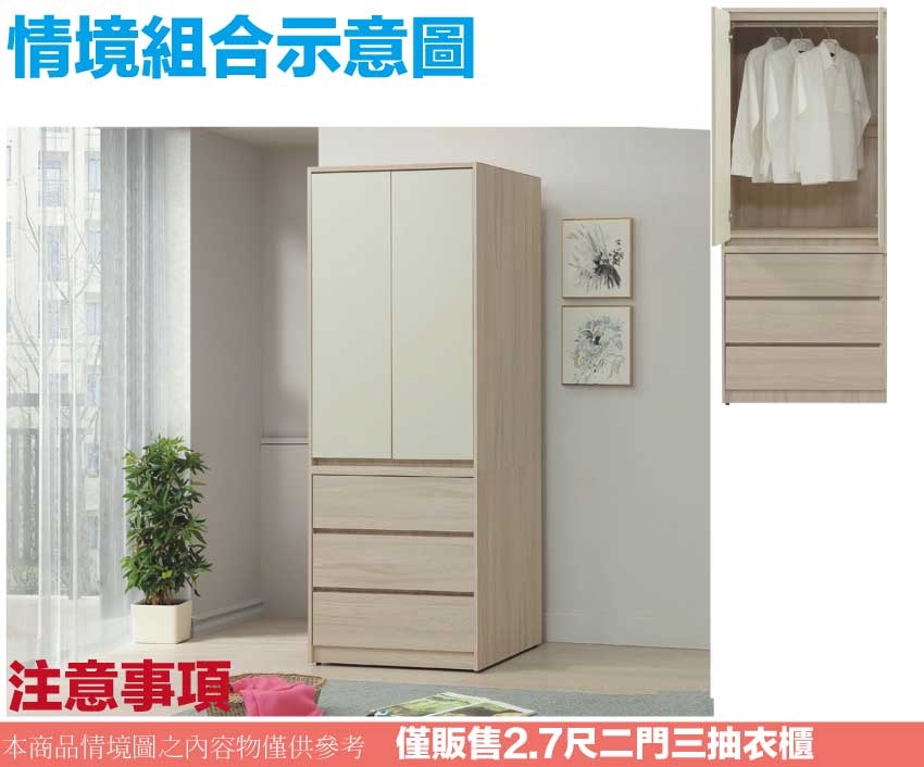 - ◆產品名稱:【綠家居】艾悠2.7尺二門三抽衣櫃