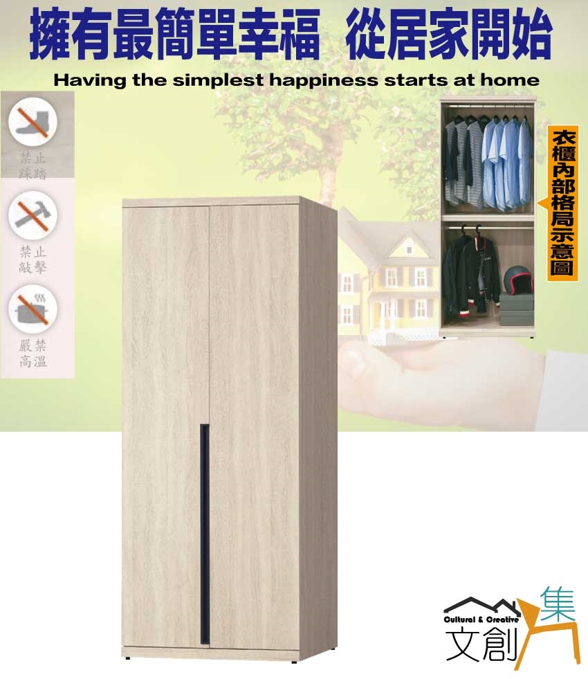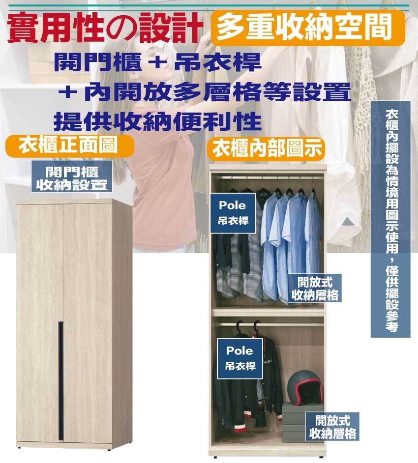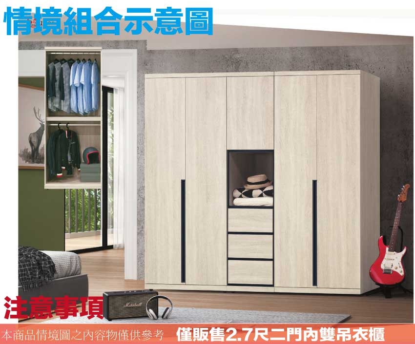 - ◆產品名稱:【綠家居】摩泰2.7尺二門內雙吊衣櫃