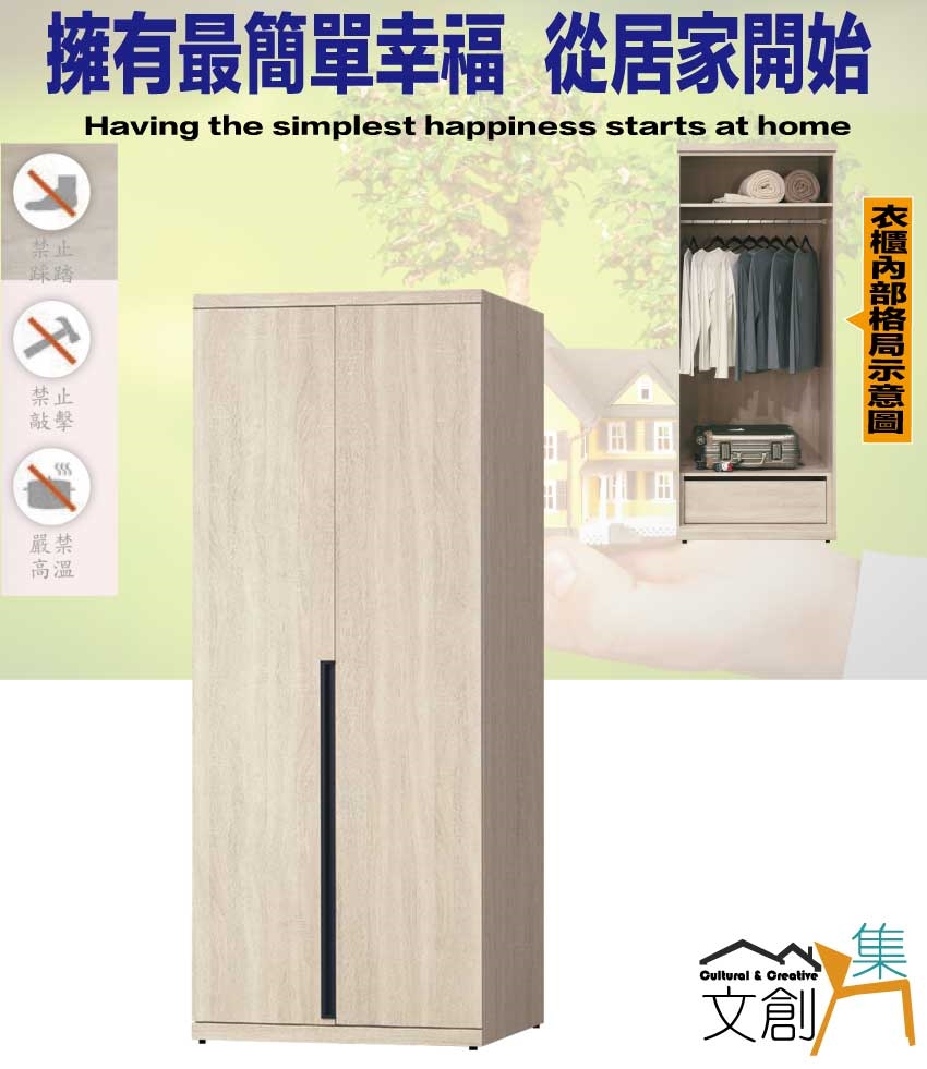 【綠家居】摩泰2.7尺二門內單抽衣櫃