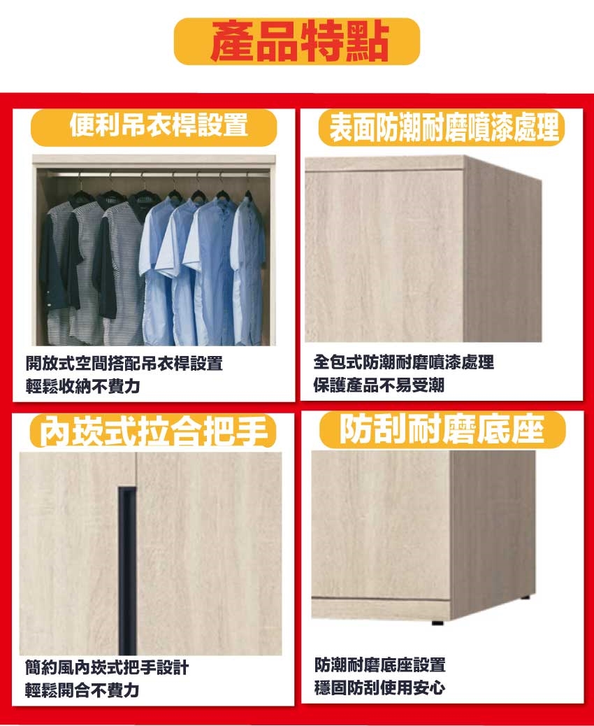 材質:防蛀木心板+防潮耐磨底座(可調高低水平)+防夾手緩衝門片五金-