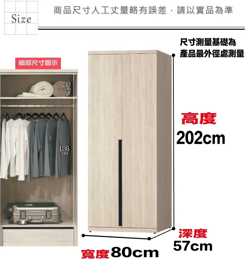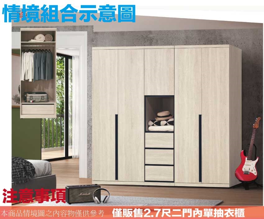 - ◆產品名稱:【綠家居】摩泰2.7尺二門內單抽衣櫃