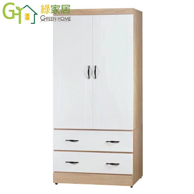 【綠家居】達歐納 時尚2.8尺二門二抽衣櫃/收納櫃(二色系可選+內含穿衣鏡面)