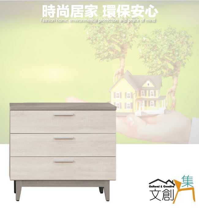 商 品 介 紹 | 【綠家居】芙娜雙色2.7尺三抽斗櫃 木紋雙色系+現代簡約風格+安心材質製造,整體採用防蛀木心板+防潮耐磨腳座+五金滑軌結構等安心材質製造,產品外層採用防潮耐磨噴漆處理搭配採用三抽屜+開放式空間等收納空間設計,全由專人配送到家,專業安心服務,替你省下更多時間! 木紋雙色系+現代簡約風格+安心材質製造,使用放心+搭配居家更便利 採用防蛀木心板+防潮耐磨腳座+五金滑軌結構等安心材質製造 產品外層採用防潮耐磨噴漆處理 採用三抽屜+開放式空間等收納空間設計 此商品不需要DIY組立,此商品為組立後之成品 品質保證、專業設計、貼心服務 全由專人配送到家,專業安心服務,替您省下更多時間 |
