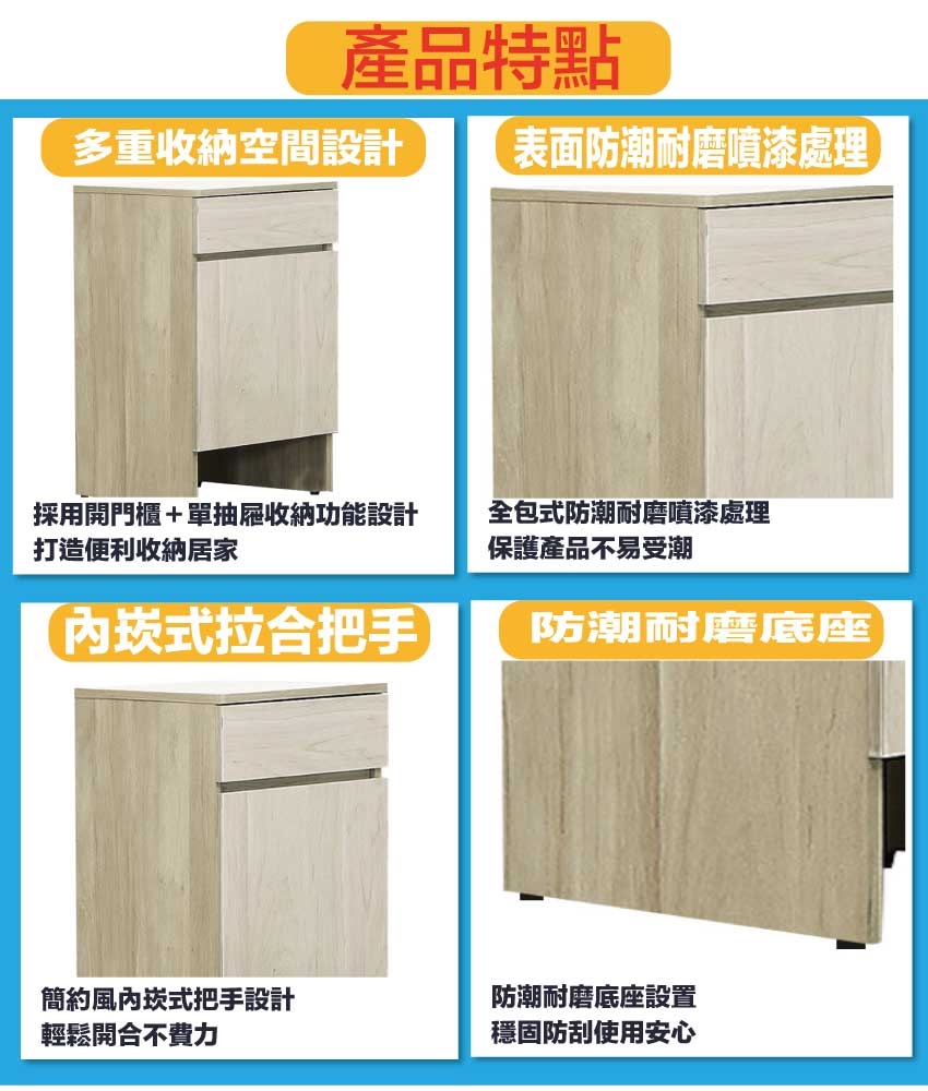淺橡木紋色系+安心材質製造,使用放心+搭配居家更便利