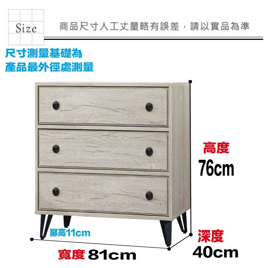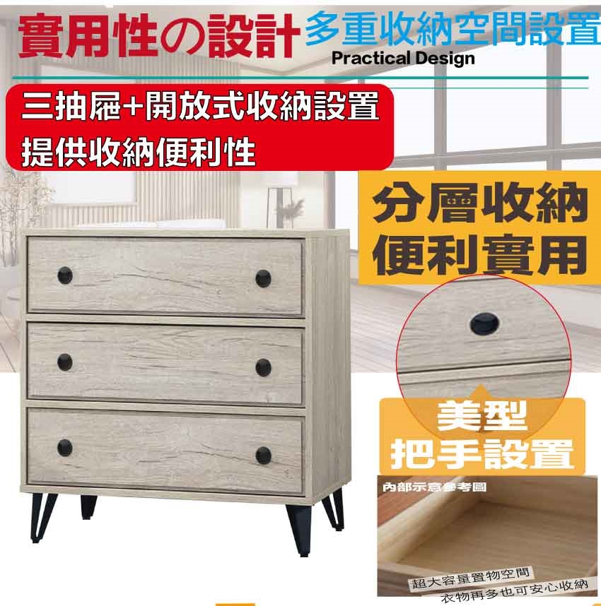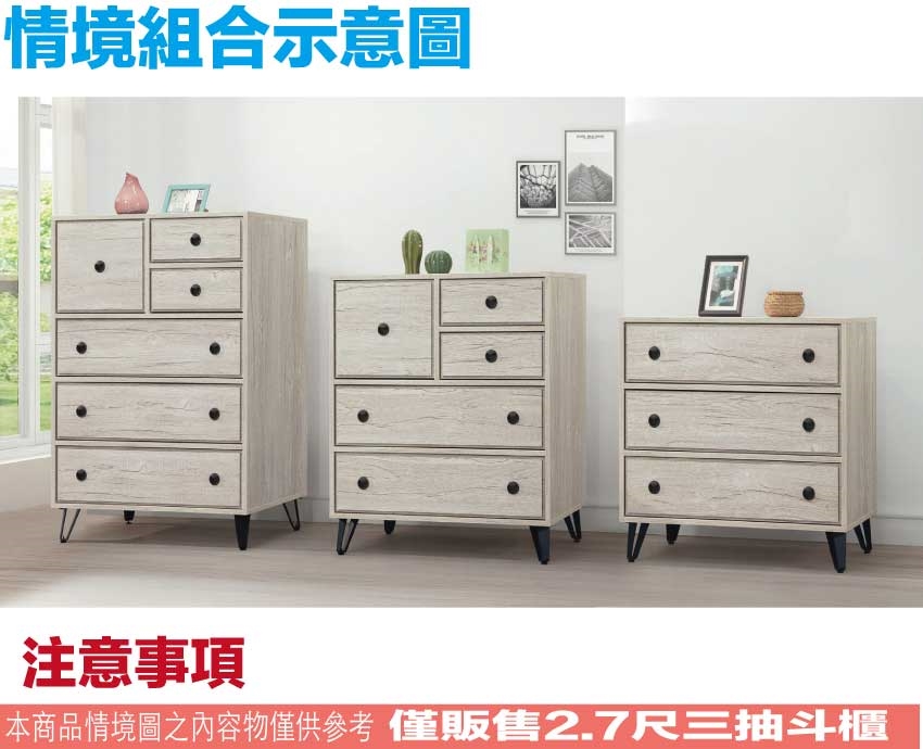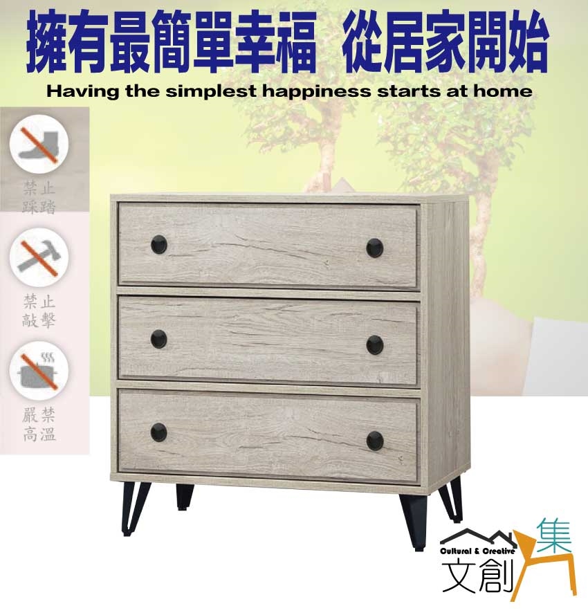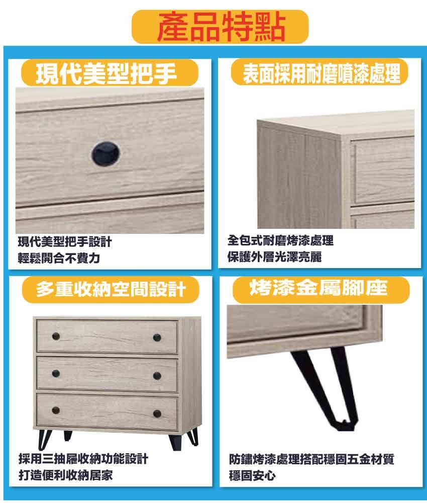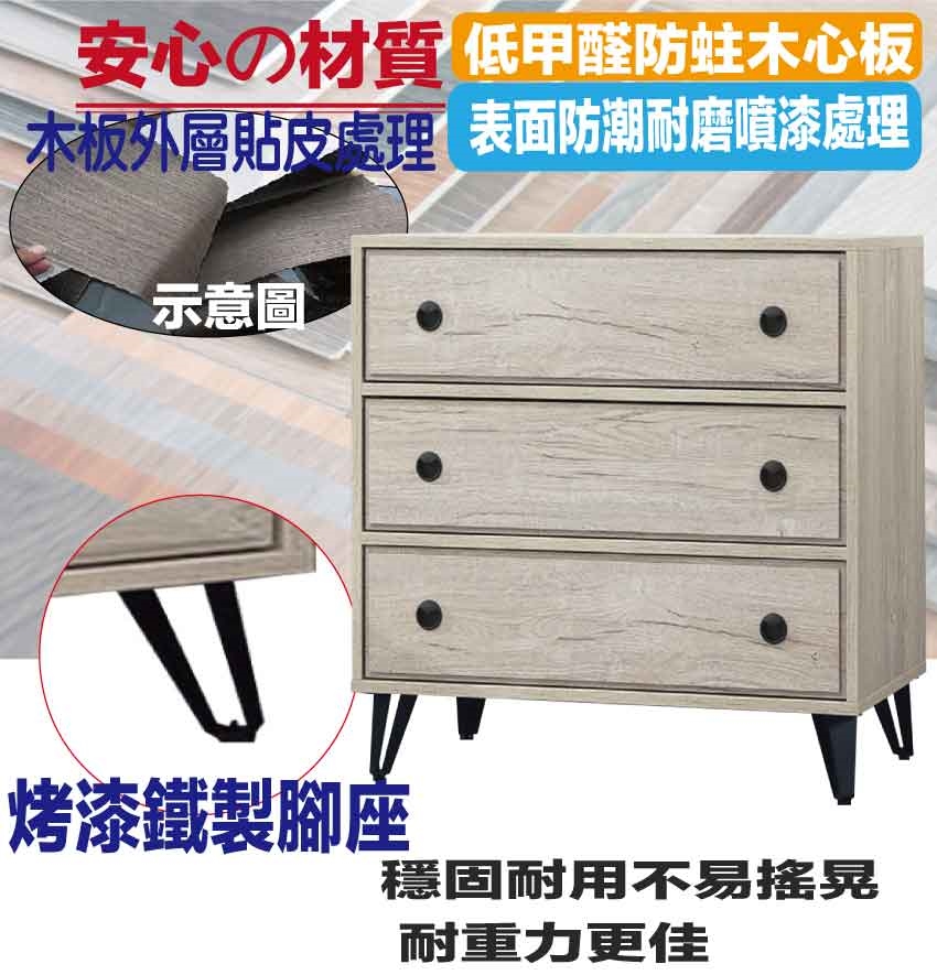 - ◆產品名稱:【綠家居】摩帝2.7尺三抽斗櫃