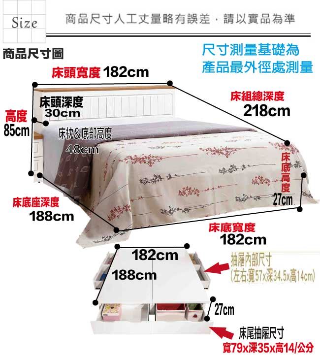 【綠家居】麥思雙色6尺雙人加大六抽床台組合(床頭箱+六抽床底+不含床墊)