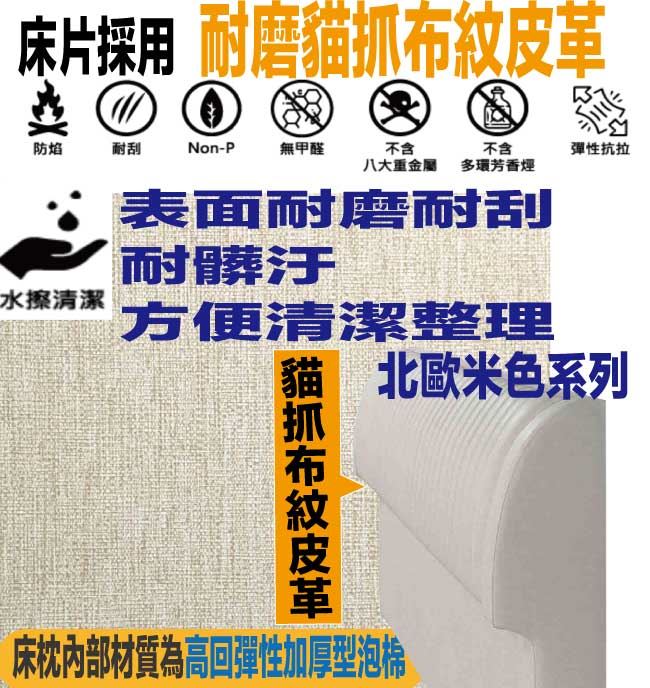 【綠家居】坦思利5尺雙人貓抓布紋皮革床台組合(床頭片+床底+不含床墊)