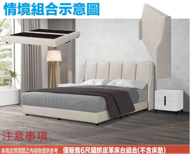 【綠家居】菲坦6尺雙人加大貓抓布紋皮革床台組合(床頭片+床底+不含床墊)