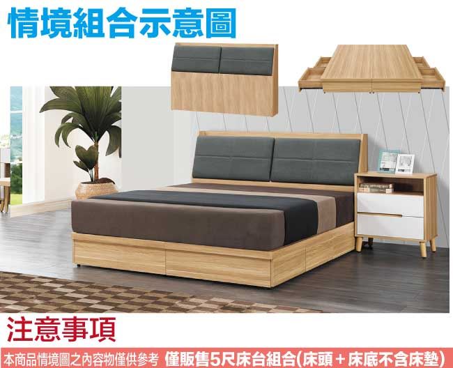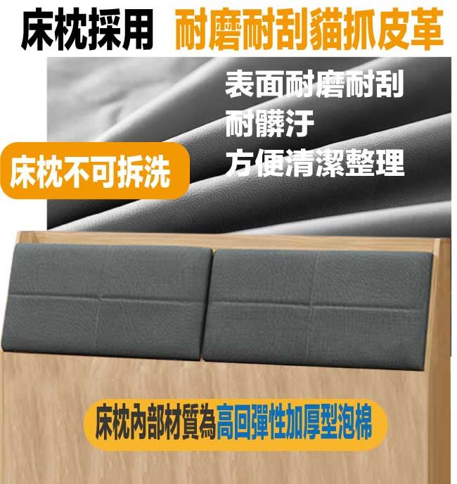 【綠家居】約書亞5尺雙人貓抓皮革四抽床台組合(床頭箱+四抽床底+不含床墊)
