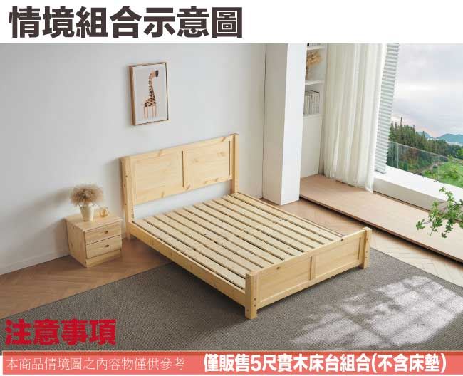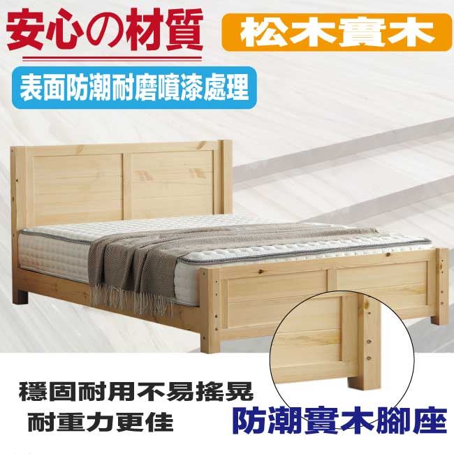 商 品 介 紹 | 【綠家居】安利5尺實木雙人床台組合 松木紋色系+現代簡約風格+安心材質製造,整體採用松木實木+六分木床底板+防潮實木腳座等安心材質製造,產品外層採用防潮耐磨噴漆處理,全由專人配送到家,專業安心服務,替你省下更多時間! 【商品特色】 松木紋色系+現代簡約風格+安心材質製造,使用放心+搭配居家更便利 採用松木實木+六分木床底板+防潮實木腳座等安心材質製造 產品外層採用防潮耐磨噴漆處理 此商品不需要DIY組立,此商品為組立後之成品 品質保證、專業設計、貼心服務 全由專人配送到家,專業安心服務,替您省下更多時間