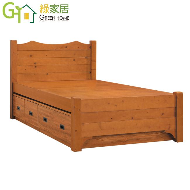 【綠家居】吉里巴斯 現代3.5尺木紋單人多功能收納床台組合(床頭片+四抽可掀式床底)