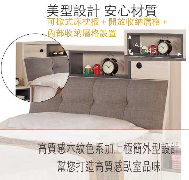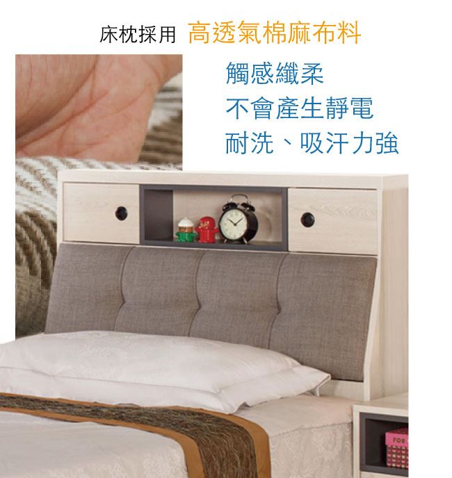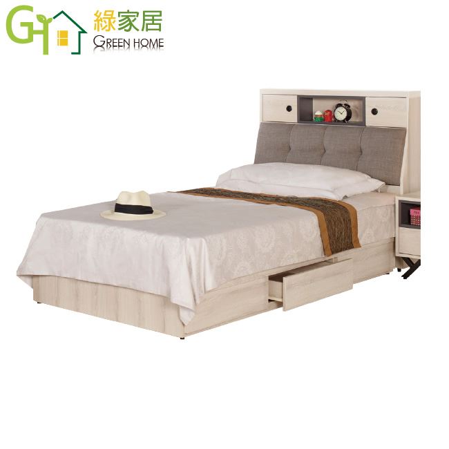【綠家居】柏文 淺橡3.5尺單人棉麻布三抽床台組合(床頭箱+三抽床底+不含床墊)