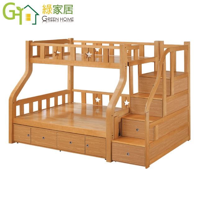 【綠家居】布諾 現代3.5尺單人實木雙層樓梯式床台(不含床墊)