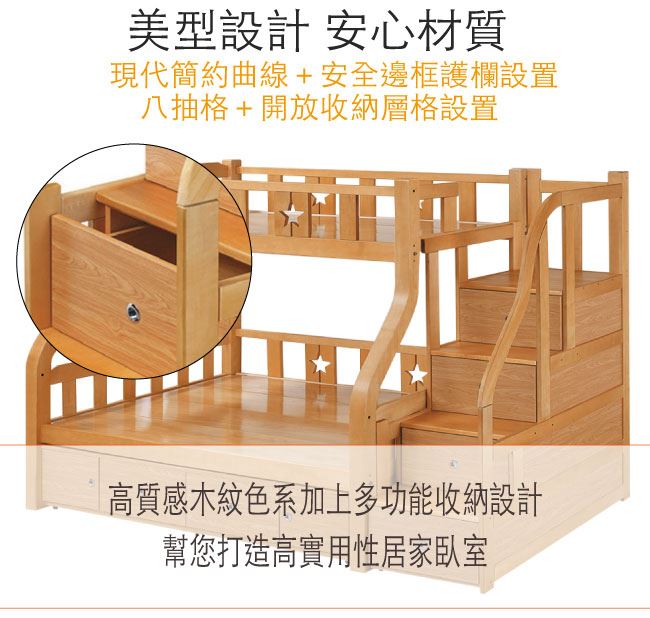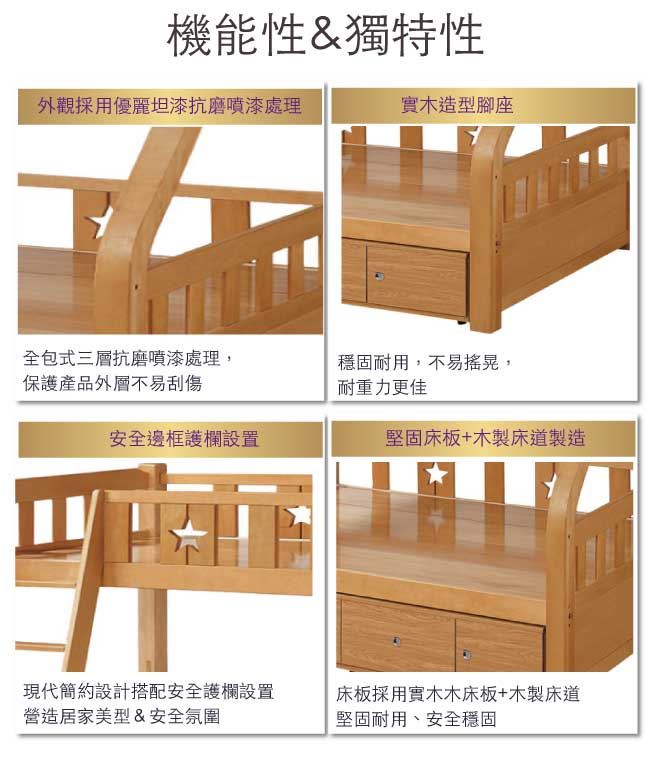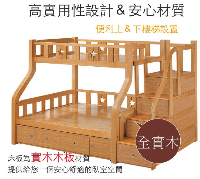 商品 介紹 | 【綠家居】艾利斯 現代3.5尺單人實木雙層床台(不含床墊) 檜木紋色系+現代簡約風格+安心材質製造,整體採用松木實木+四分木床板+防蛀木心板等安心材質製造搭配安全護欄設置+可收納樓梯層櫃等安心防護設施,外層採用優利坦全包式耐磨噴漆處理,全由專人配送到家,專業安心服務,替你省下更多時間! 【商品特色】 檜木紋色系+現代簡約風格+安心材質製造,使用放心+搭配居家更便利 松木實木+四分木床板+防蛀木心板等安心材質製造 造搭配安全護欄設置+可收納樓梯層櫃等安心防護設施 此商品不需要DIY組立,此商品為組立後之成品 品質保證、專業設計、貼心服務 全由專人配送到家,專業安心服務,替您省下更多時間 |