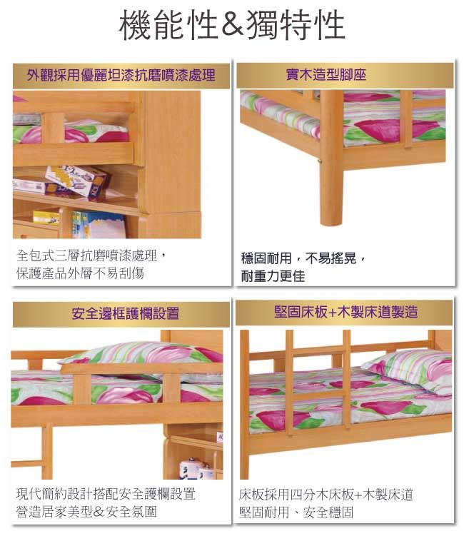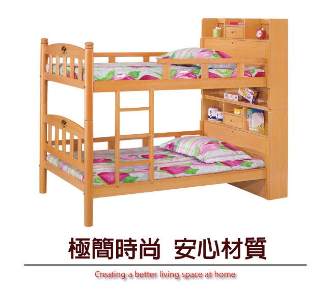 商品 介紹 | 【綠家居】洛斯 檜木紋3.5尺單人實木雙層床台組合(不含床墊) 檜木紋色+現代簡約風格+安心材質製造,整體採用松木實木+四分木床板+防潮實木底座等安心材質製造,外層採用優利坦全包式耐磨噴漆處理搭配搭配上&下床頭設有雙抽格+可掀式床枕板等收納空間設計,全由專人配送到家,專業安心服務,替你省下更多時間! 【商品特色】 檜木紋色+現代簡約風格+安心材質製造,使用放心+搭配居家更便利 採用松木實木+四分木床板+防潮實木底座等安心材質製造 搭配上&下床頭設有雙抽格+可掀式床枕板等收納空間設計 此商品不需要DIY組立,此商品為組立後之成品 品質保證、專業設計、貼心服務 全由專人配送到家,專業安心服務,替您省下更多時間 |