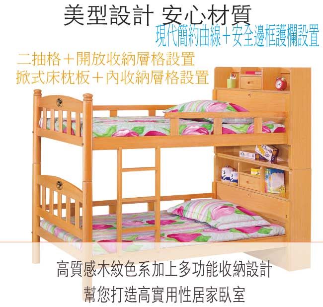 【綠家居】洛斯 檜木紋3.5尺單人實木雙層床台組合(不含床墊)