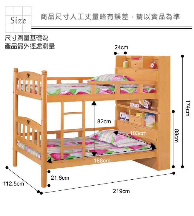 材質 | ◆產品名稱: 【綠家居】洛斯 檜木紋3.5尺單人實木雙層床台組合(不含床墊) 產品尺寸: 床台尺寸:(寬)112.5(深)219x(高)174/公分 ◆材質: 材質:松木實木+四分木床板+防潮實木底座 塗漆:優利坦全包式耐磨噴漆處理