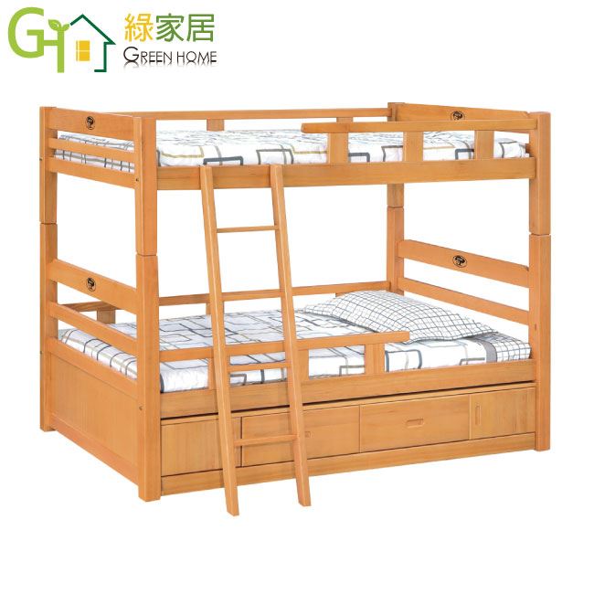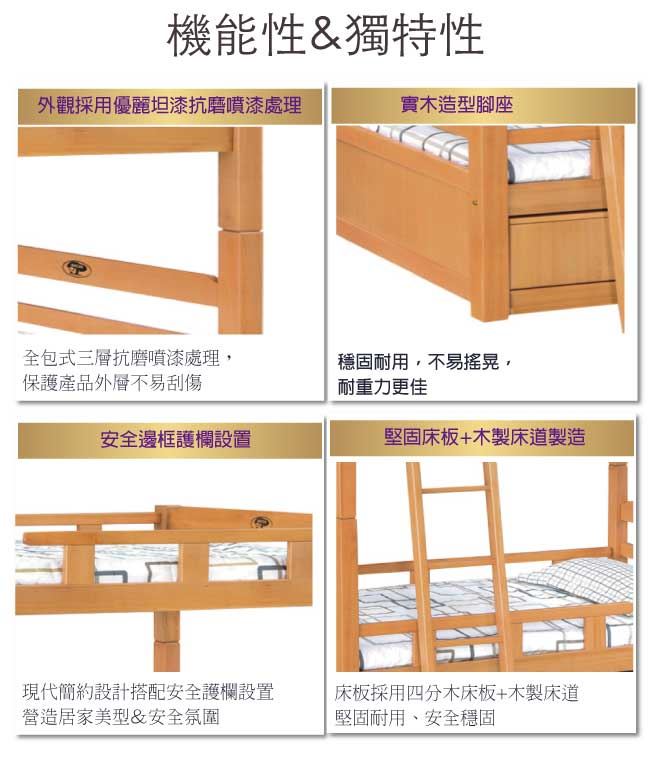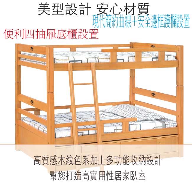 【綠家居】羅西斯 檜木紋3.5尺單人實木雙層四抽櫃床台組合(不含床墊)