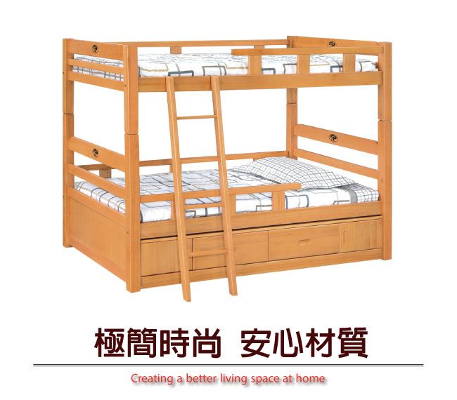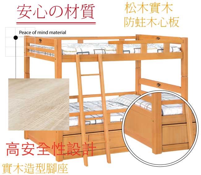 商品 介紹 | 【綠家居】羅西斯 檜木紋3.5尺單人實木雙層四抽櫃床台組合(不含床墊) 檜木紋色+現代簡約風格+安心材質製造,整體採用松木實木+四分木床板+防潮實木底座等安心材質製造,外層採用優利坦全包式耐磨噴漆處理搭配四抽收納床底櫃收納空間設計,全由專人配送到家,專業安心服務,替你省下更多時間! 【商品特色】 檜木紋色+現代簡約風格+安心材質製造,使用放心+搭配居家更便利 採用松木實木+四分木床板+防潮實木底座等安心材質製造 搭配四抽收納床底櫃收納空間設計 此商品不需要DIY組立,此商品為組立後之成品 品質保證、專業設計、貼心服務 全由專人配送到家,專業安心服務,替您省下更多時間 |