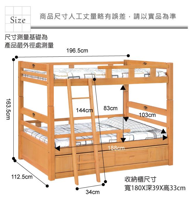 材質 | ◆產品名稱: 【綠家居】羅西斯 檜木紋3.5尺單人實木雙層四抽櫃床台組合(不含床墊) 產品尺寸: 床台尺寸:(寬)112.5(深)196.5x(高)163.5/公分 ◆材質: 材質:松木實木+四分木床板+防潮實木底座 塗漆:優利坦全包式耐磨噴漆處理