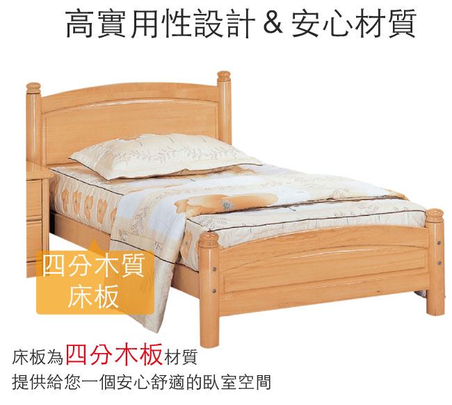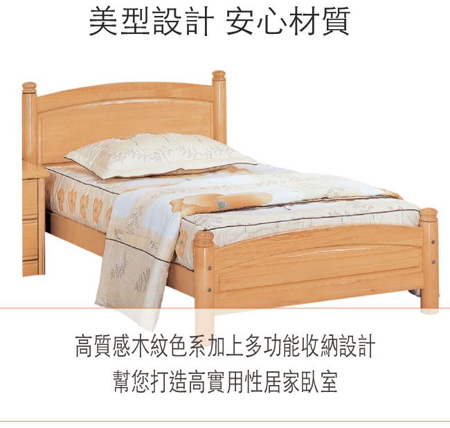 商品 介紹 | 【綠家居】路卡沙 歐風3.5尺單人實木床台(不含床墊) 檜木紋色系+現代簡約風格+安心材質製造,整體採用松木實木+四分木床板等安心材質製造,外層採用優利坦全包式耐磨噴漆處理,全由專人配送到家,專業安心服務,替你省下更多時間! 【商品特色】 檜木紋色系+現代簡約風格+安心材質製造,使用放心+搭配居家更便利 採用松木實木+四分木床板等安心材質製造 此商品不需要DIY組立,此商品為組立後之成品 品質保證、專業設計、貼心服務 全由專人配送到家,專業安心服務,替您省下更多時間 |