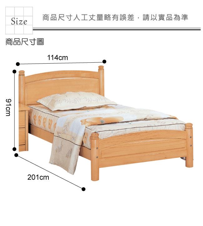 材質 | ◆產品名稱: 【綠家居】路卡沙 歐風3.5尺單人實木床台(不含床墊) 產品尺寸: 尺寸:(寬)114(深)201x(高)91/公分 ◆材質: 材質:松木實木+四分木床板 塗漆:優利坦全包式耐磨噴漆處理