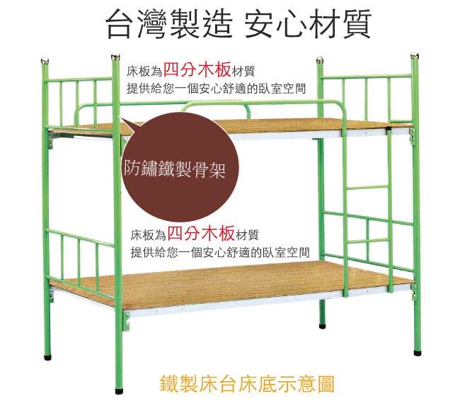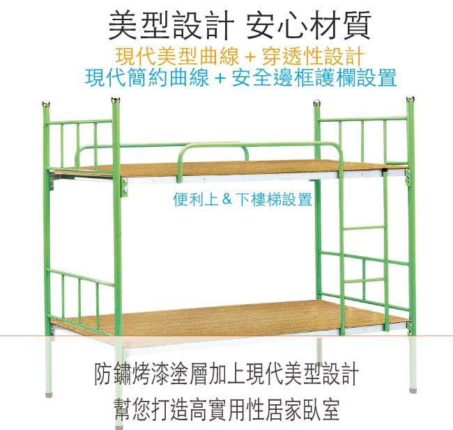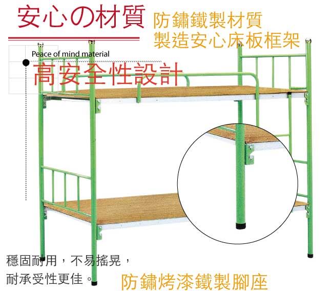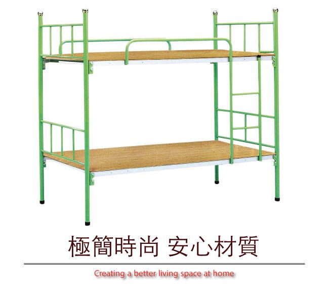 產品名稱:【綠家居】康羅斯 青蘋果色3.1尺單人鐵製雙層床台組合 產品尺寸: 床台尺寸:(寬)92(深)190.5x(高)168.5/公分 ◆材質: 材質:防鏽烤漆鐵製框架&底座+四分木床板 外層採用全包式防鏽烤漆處理