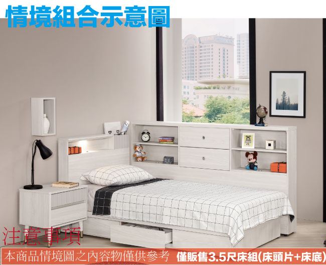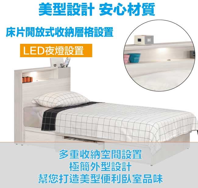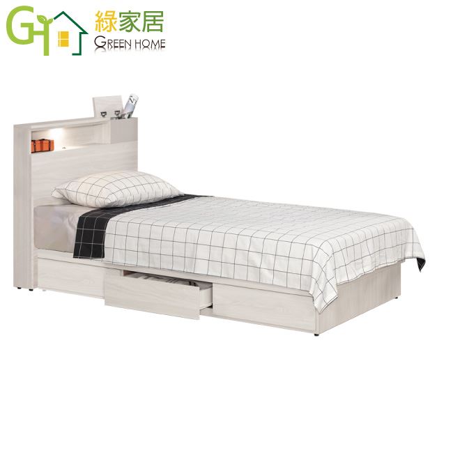 【綠家居】摩克3.5尺夜燈單人三抽床台組合(床頭片+三抽床底+不含床墊)