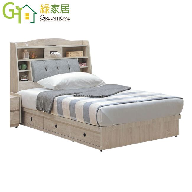 【綠家居】迪爾3.5尺單人貓抓皮革可收納三抽床台組合(床頭箱+三抽床底+不含床墊)