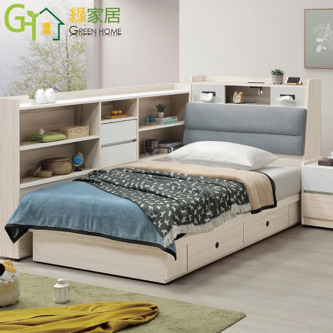 ★偏遠地區需額外加收運費,下標請先問與答詢問★ ★下訂前注意 由於商品流動較快,下訂前請先詢問是否有貨在下訂喔~★ 【綠家居】艾蘿3.5尺單人貓抓皮二抽床台組合(床頭箱+二抽床底+不含床墊) 淺橡木紋色系+安心材質製造,使用放心+搭配居家更便利,採用防蛀木心板+六分木床板+防潮耐磨底座+耐刮貓抓皮革+高回彈泡棉等安心材質製造 ,外層採用防潮耐磨噴漆處理搭配床頭箱採用可掀式床枕板+內&外開放式層格+便利插座設置加上床底採用單邊開合二抽屜等收納空間設計,全由專人配送到家,專業安心服務,替你省下更多時間!
