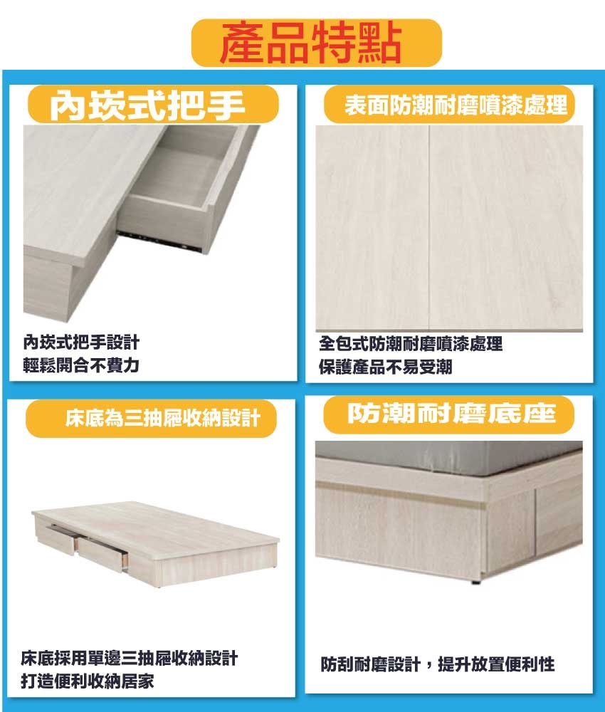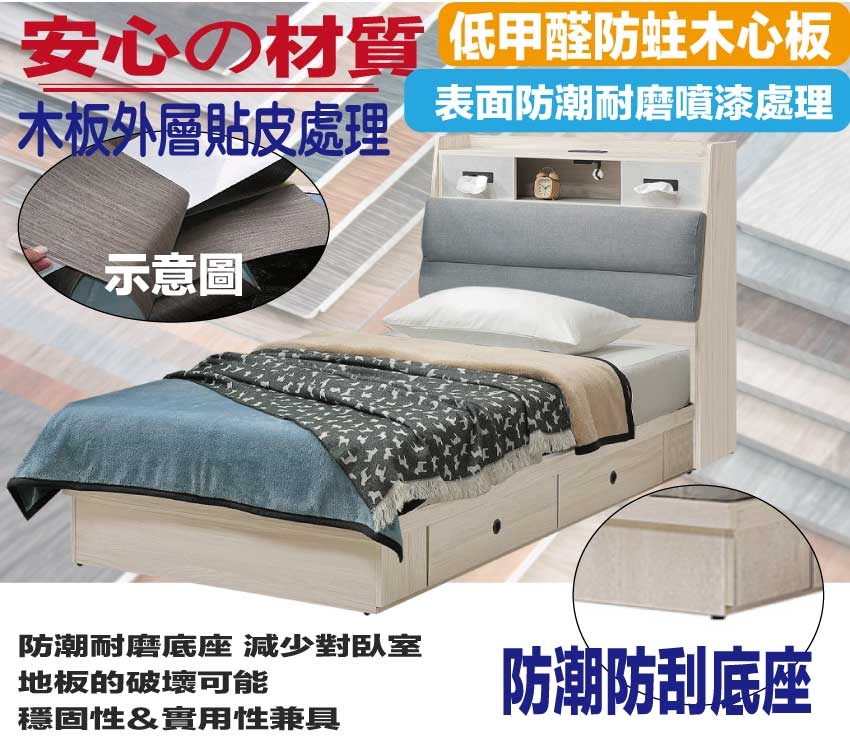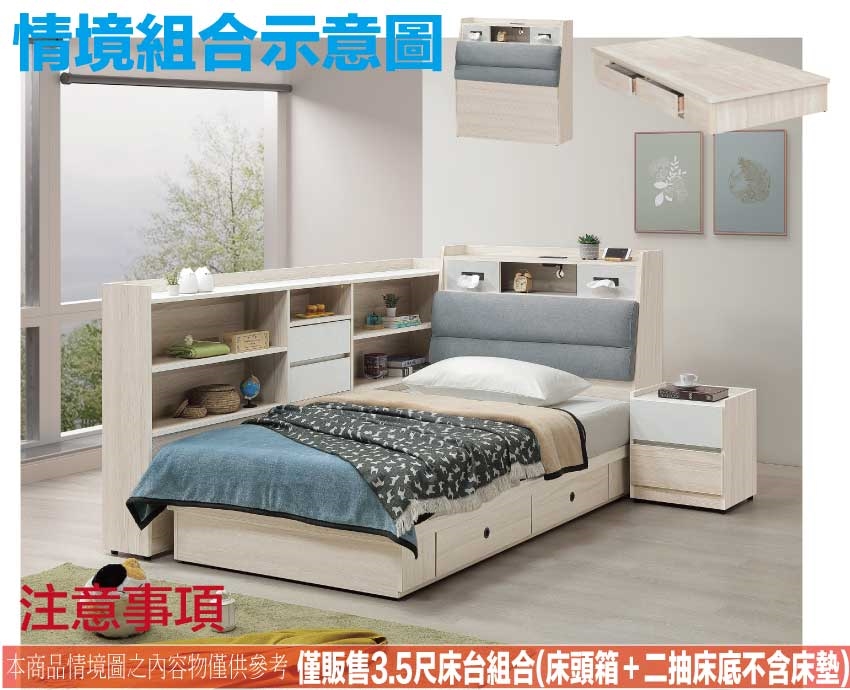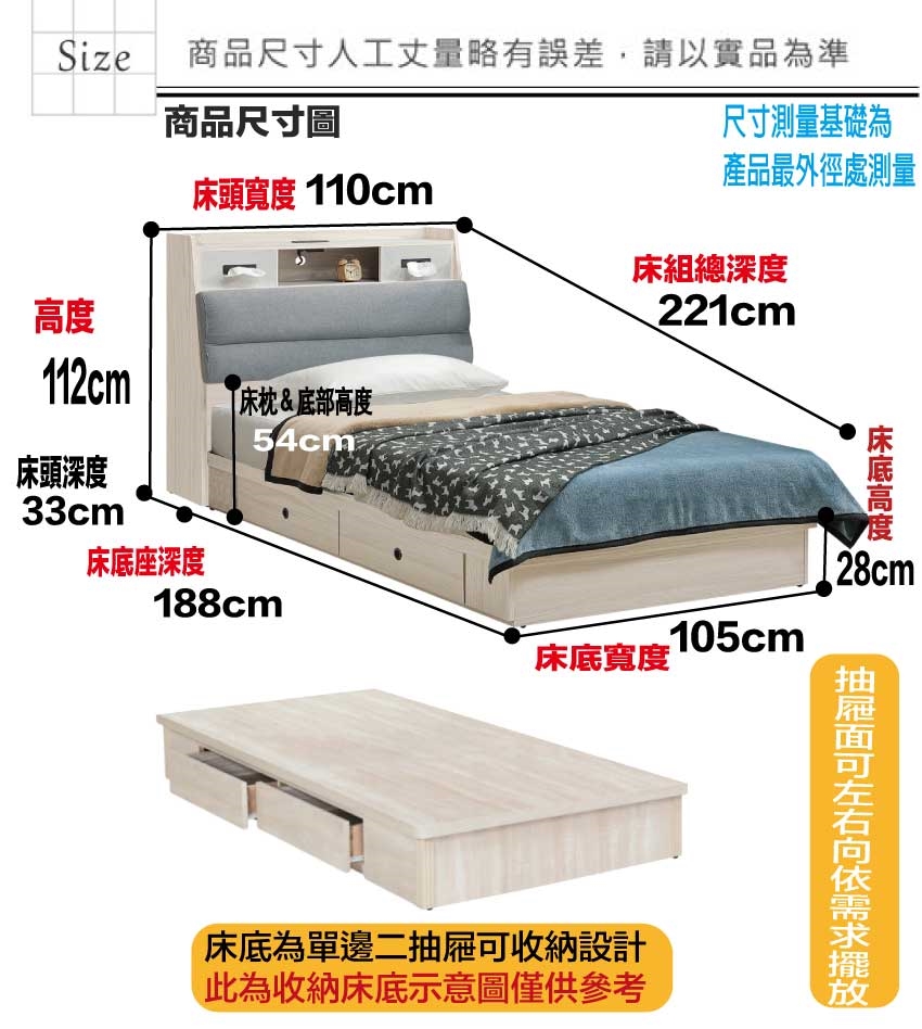 請注意 此收納床台組合搭配床頭&收納床底顏色有稍微些許色差非完全相同顏色 購買前請先確認是否能接受些微顏色差異再行購買,謝謝!