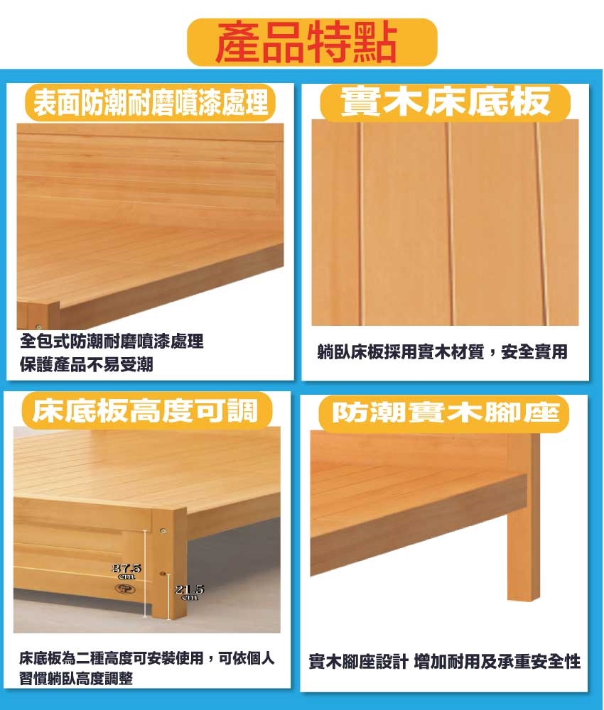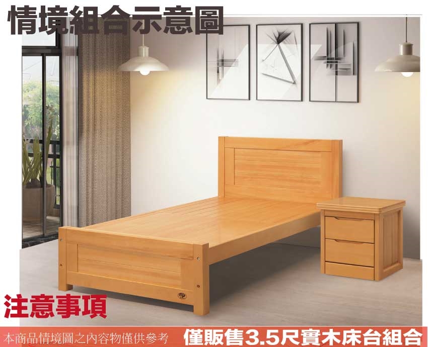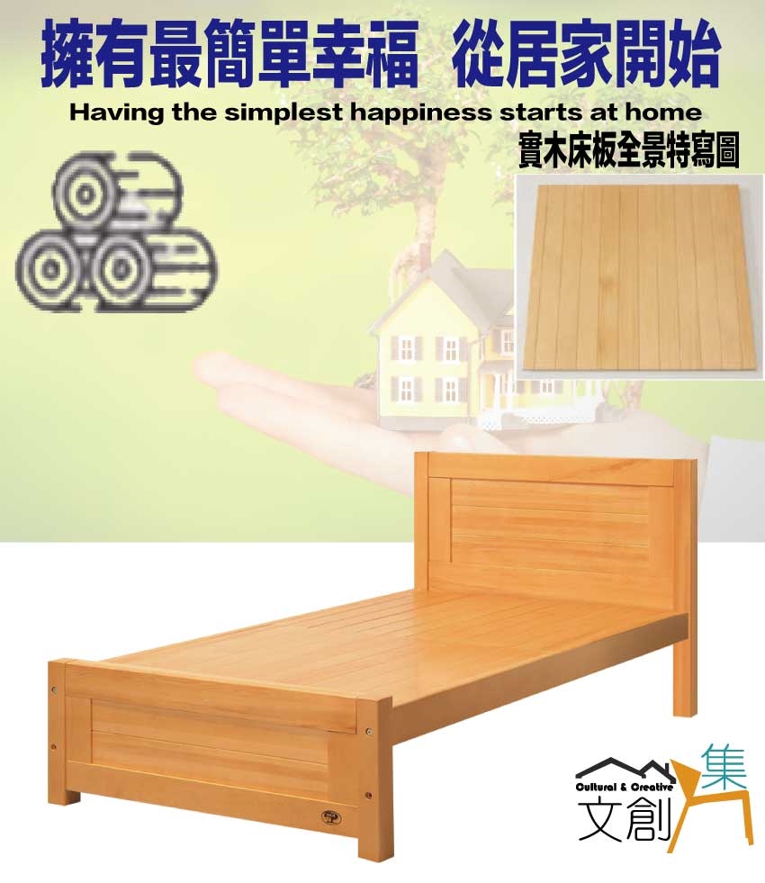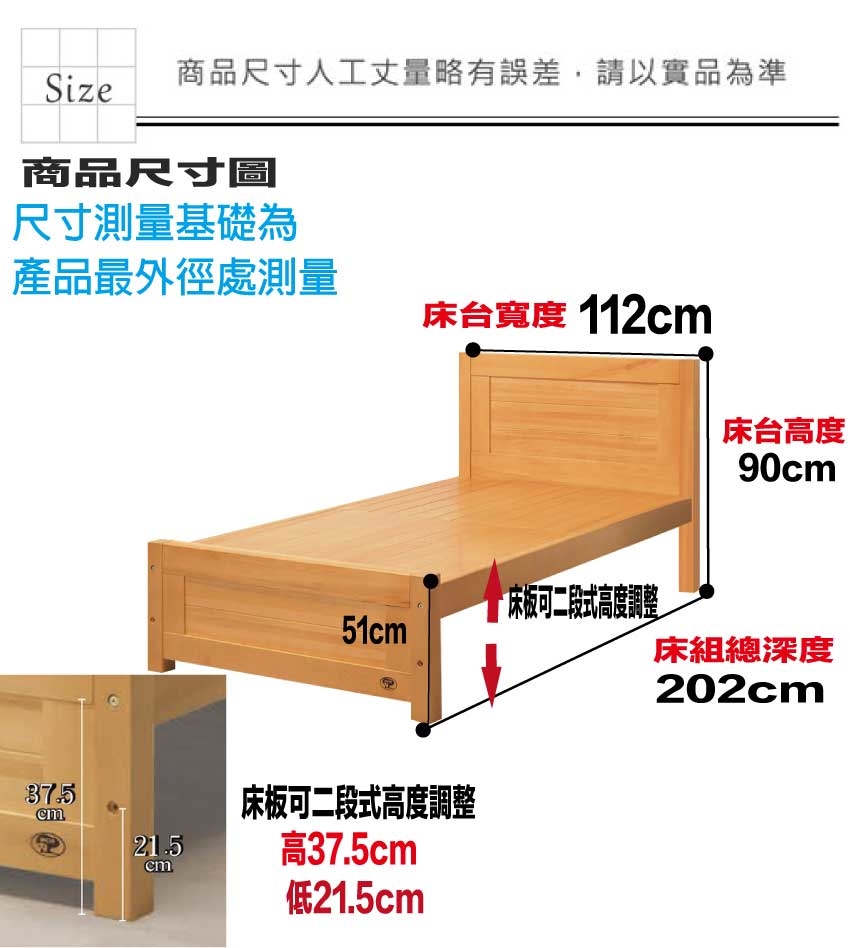 - ◆產品名稱:【綠家居】康健3.5尺單人實木床台(採用實木床底板+床底板二段高度可調)