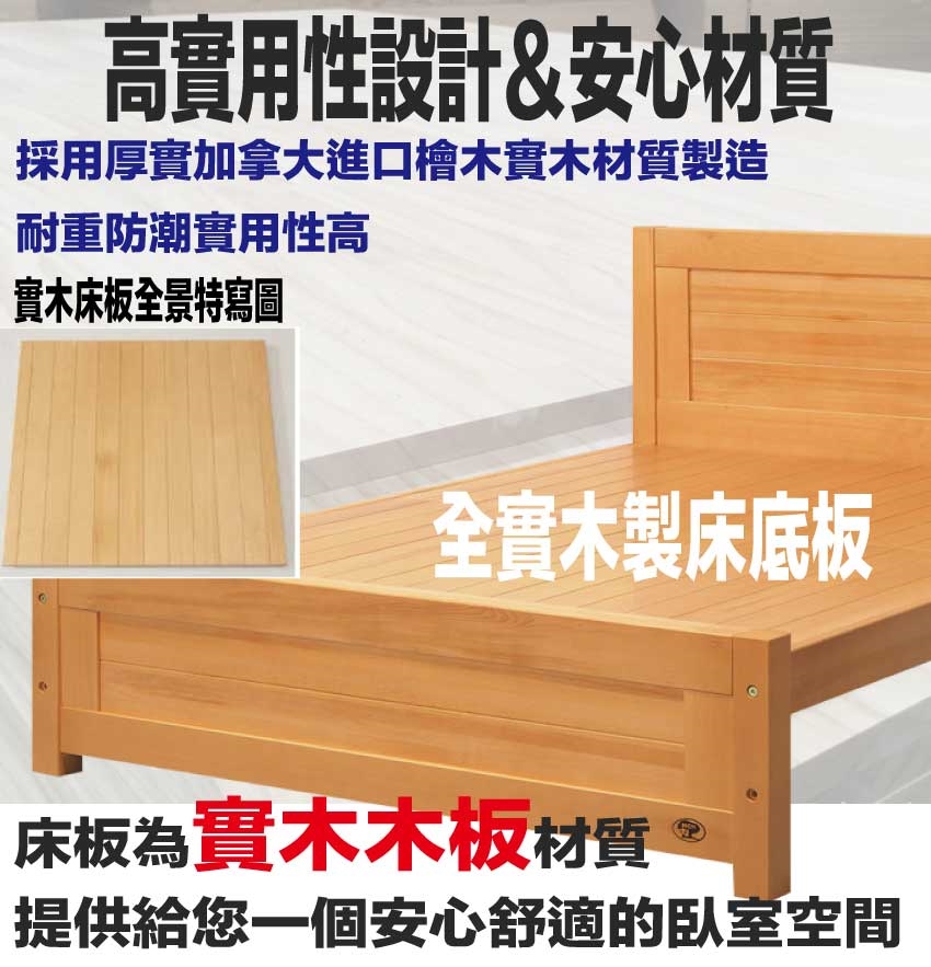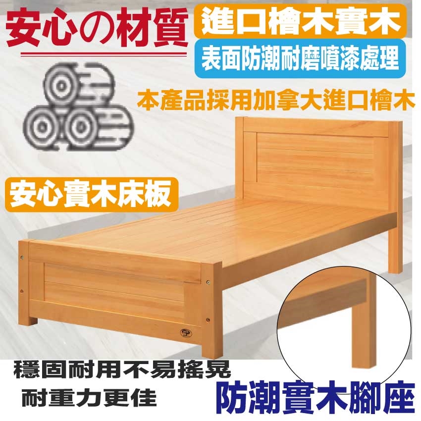 採用進口檜木實木+實木床底板+實木高腳座等安心材質製造