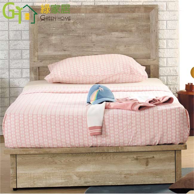 【綠家居】華爾茲 工業風3.5尺木紋單人收納床台組合(床頭片+三抽床底+不含床墊)