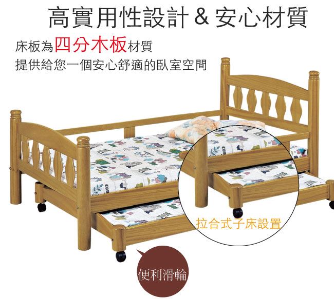 【綠家居】諾斯賽 現代3.5尺單人實木子母床台組合