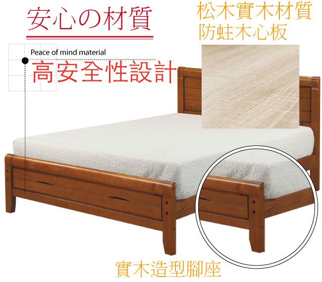 材質 | ◆產品名稱: 【綠家居】卡因 樟木紋5尺雙人實木床台(不含床墊) 產品尺寸: 床台尺寸:(寬)153(深)197x(高)96/公分 床板可做二段式高低調整功能性設計 ◆材質: 材質:松木實木+四分木床板+防潮實木底座 塗漆:優利坦全包式耐磨噴漆處理