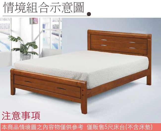 【綠家居】卡因 樟木紋5尺雙人實木床台(不含床墊)