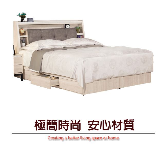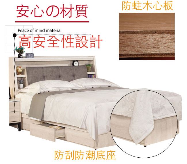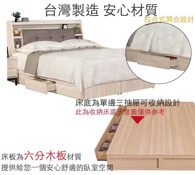 - 可掀式床枕板+單邊開合三抽屜