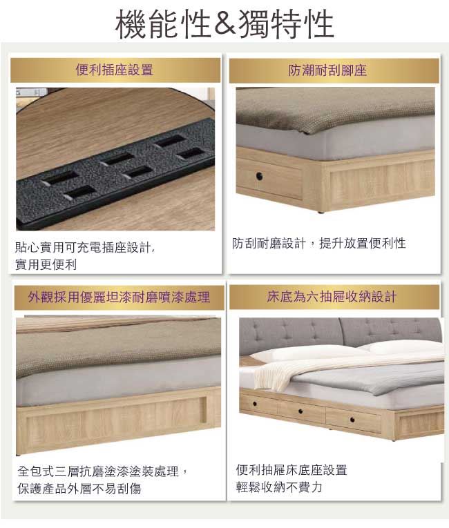 商品 介紹 | 【綠家居】科羅利 亞麻布5尺雙人六抽床台組合(二色可選+床頭箱+六抽床底+不含床墊) 二色可選+現代簡約風格+安心材質製造,整體採用防蛀木心板+透氣亞麻布+高密度泡棉+六分木床板+防潮耐磨底座等安心材質製造,外層採用優利坦全包式耐磨噴漆處理搭配採用可掀式床頭枕板+開放&隱藏式收納層格+便利插座設置+雙邊開合收納六抽屜等便利設計,全由專人配送到家,專業安心服務,替你省下更多時間! 【商品特色】 二色可選+現代簡約風格+安心材質製造,使用放心+搭配居家更便利 採用防蛀木心板+透氣亞麻布+高密度泡棉+六分木床板+防潮耐磨底座等安心材質製造 採用可掀式床頭枕板+開放&隱藏式收納層格+便利插座設置+雙邊開合收納六抽屜等便利設計 此商品不需要DIY組立,此商品為組立後之成品 品質保證、專業設計、貼心服務 全由專人配送到家,專業安心服務,替您省下更多時間 |