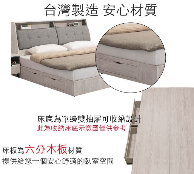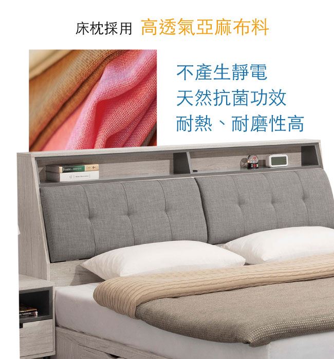 商品 介紹 | 【綠家居】古利德 現代5尺雙人亞麻布二抽床台組合(床頭箱+二抽床底+不含床墊) 橡木紋色系+現代簡約風格+安心材質製造,整體採用防蛀木心板+透氣亞麻布+高密度泡棉+六分木床板+防潮耐磨底座等安心材質製造,外層採用優利坦全包式耐磨噴漆處理搭配採用可掀式床頭枕板+開放&隱藏式收納層格+便利插座設置+單邊開合收納二抽屜等便利設計,全由專人配送到家,專業安心服務,替你省下更多時間! 【商品特色】 橡木紋色系+現代簡約風格+安心材質製造,使用放心+搭配居家更便利 採用防蛀木心板+透氣亞麻布+高密度泡棉+六分木床板+防潮耐磨底座等安心材質製造 採用可掀式床頭枕板+開放&隱藏式收納層格+便利插座設置+單邊開合收納二抽屜等便利設計 此商品不需要DIY組立,此商品為組立後之成品 品質保證、專業設計、貼心服務 全由專人配送到家,專業安心服務,替您省下更多時間 |