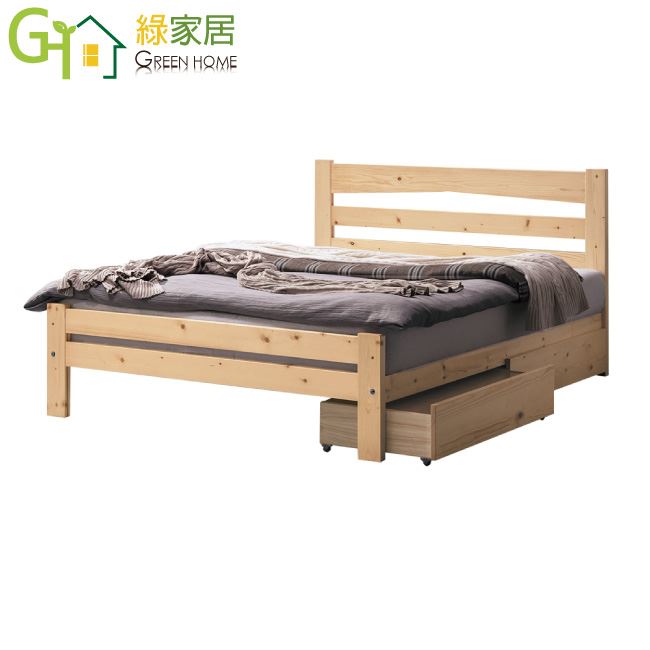 【綠家居】麥歐 現代5尺雙人實木收納床台組合(床台+雙抽屜+不含床墊)
