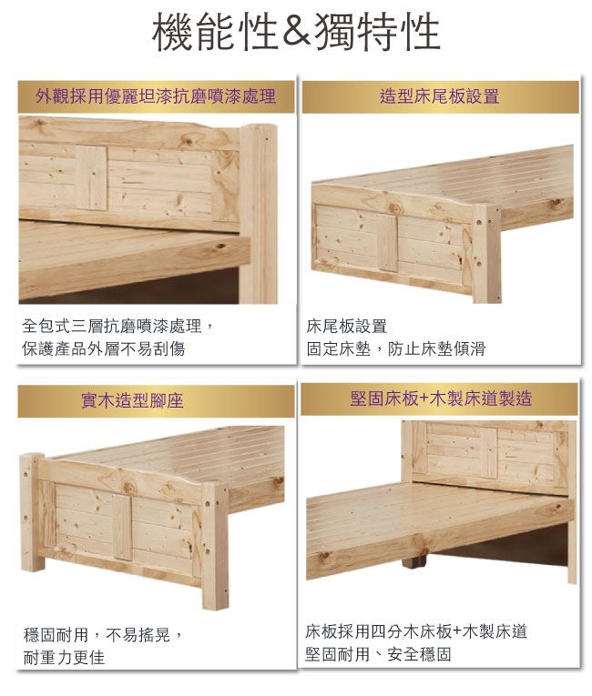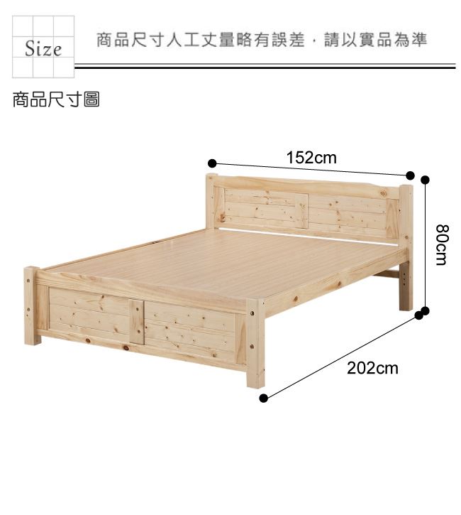 材質 | ◆產品名稱: 【綠家居】艾歐 現代5尺雙人實木床台(不含床墊) 產品尺寸: 尺寸:(寬)152(深)202x(高)80/公分 ◆材質: 材質:松木實木+四分木床板 塗漆:優利坦全包式耐磨噴漆處理