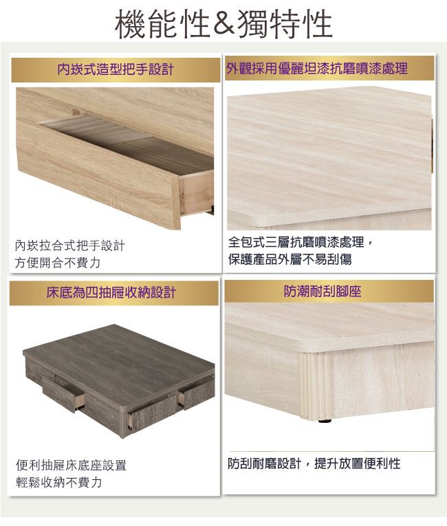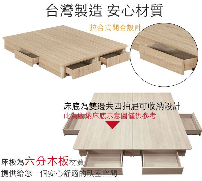 - ◆產品名稱:【綠家居】查爾地 三邊開合5尺雙人四抽床底(三色可選)
