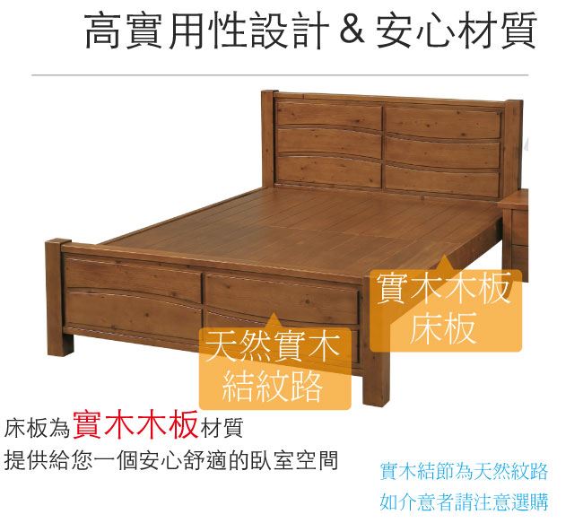 【綠家居】艾康 檜木紋5尺雙人實木床台