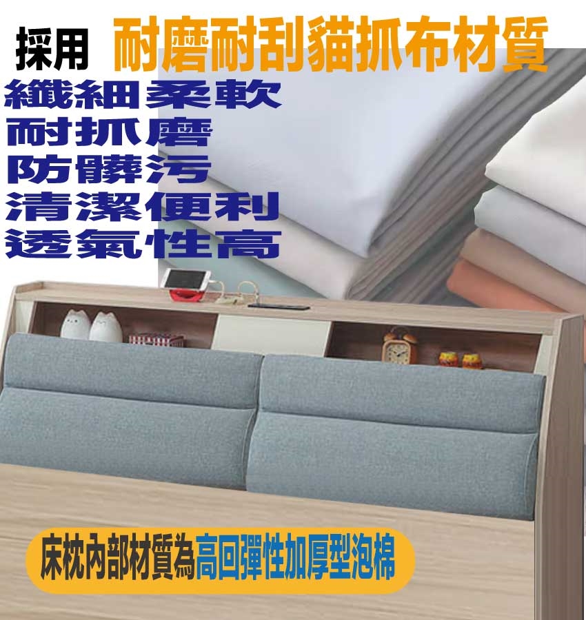 - ◆產品名稱:【綠家居】美斯5尺雙人貓抓布六抽床台組合(床頭箱+六抽床底+不含床墊)