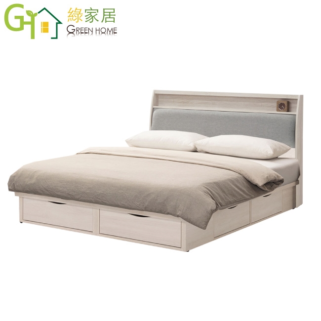 ★偏遠地區需額外加收運費,下標請先問與答詢問★ ★下訂前注意 由於商品流動較快,下訂前請先詢問是否有貨在下訂喔~★ 【綠家居】海島5尺雙人六抽貓抓皮革床台組合(床頭片+六抽床底+不含床墊) 淺橡木紋色系+現代簡約風格+安心材質製造,整體採用防蛀木心板+六分木床板+防潮耐磨底座+耐磨貓抓皮革+高回彈泡棉等安心材質製造,產品外層採用防潮耐磨噴漆處理搭配採用床底座三邊開合六抽屜收納空間設計,全由專人配送到家,專業安心服務,替你省下更多時間!