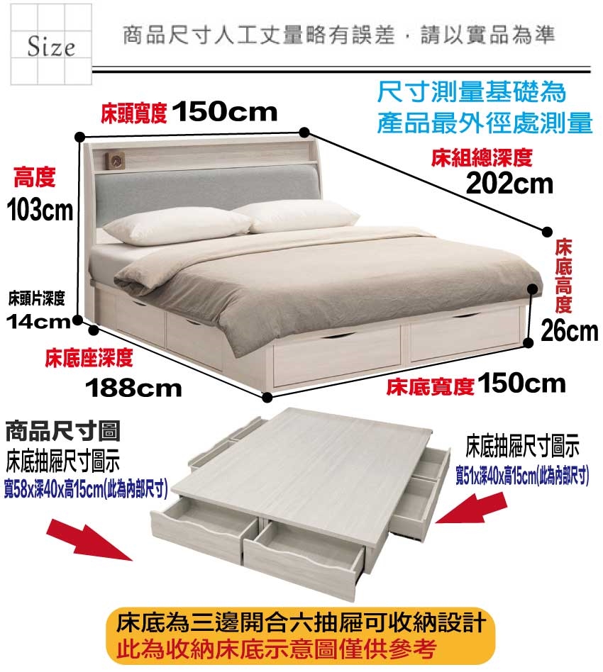 - 床頭尺寸:(寬)150x(深)14x(高)103/公分